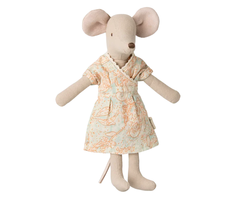 Descripción Un artículo clásico de Maileg: mamá ratoncita con un vestido ligero. Esta ratoncita se adapta a muebles y accesorios